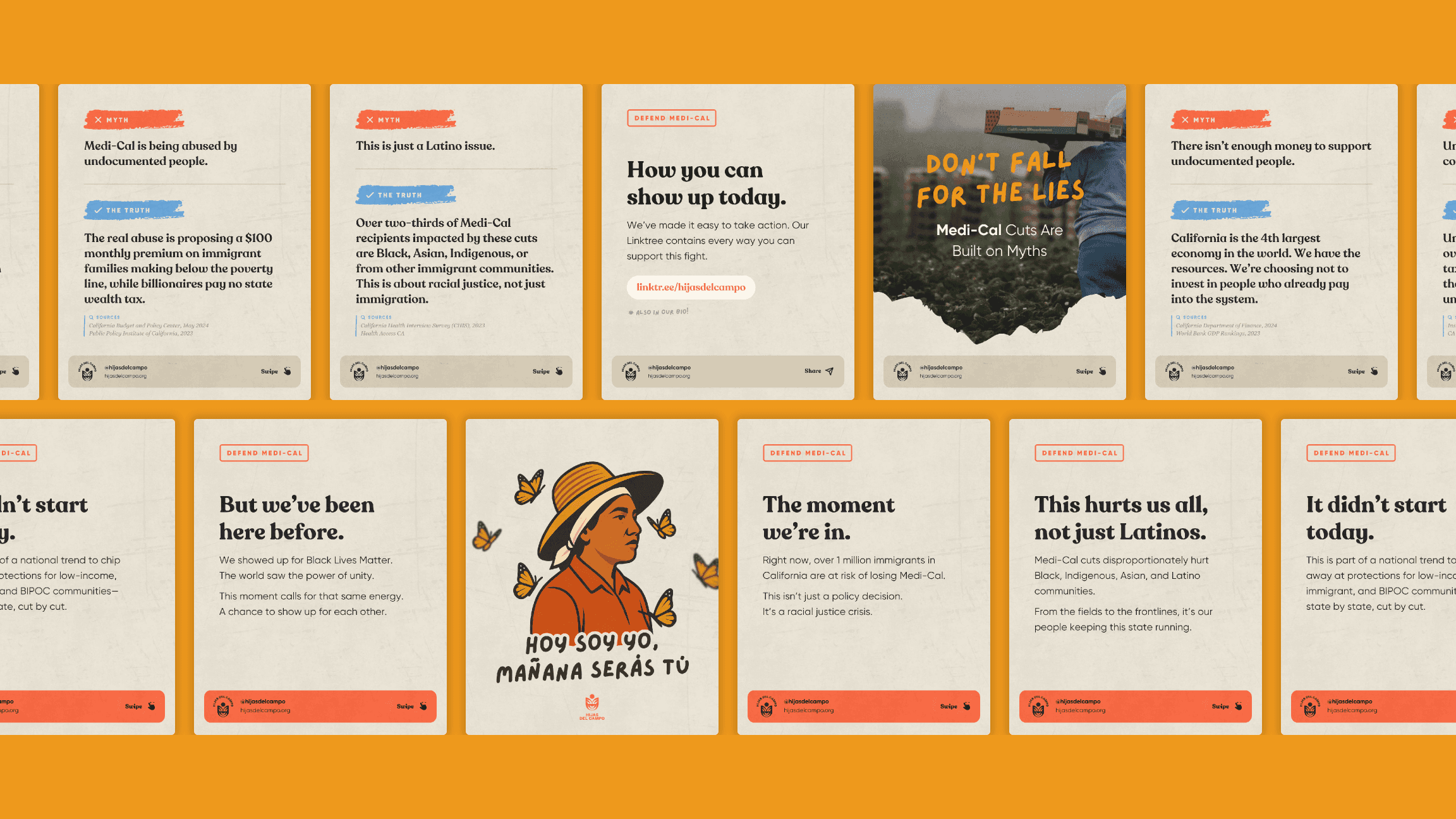Impact reports, social, and bilingual campaign materials for the Farm Worker Movement.