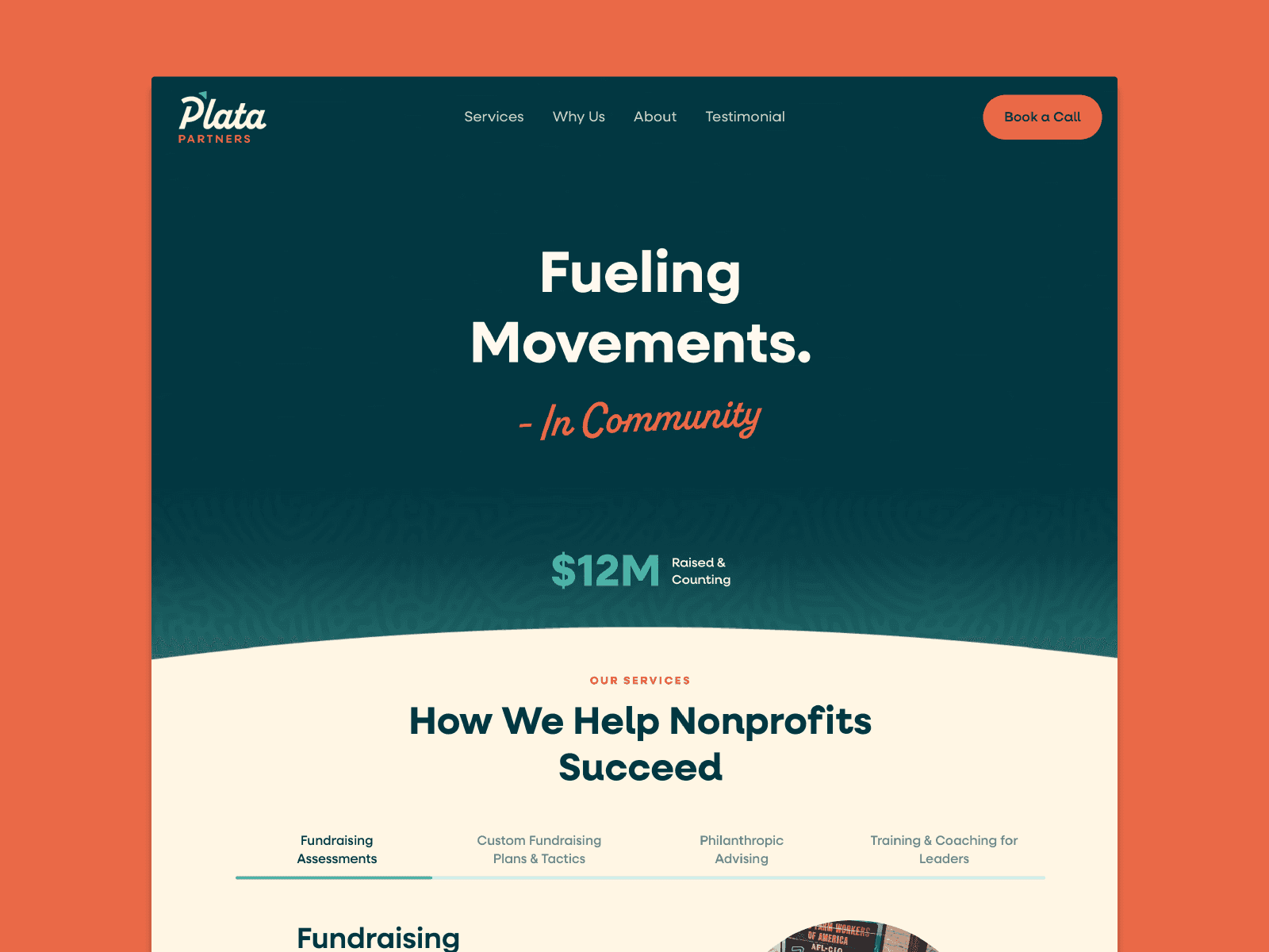 Brand identity and website for a fundraising consultancy that's helped nonprofits raise over $12M and counting.